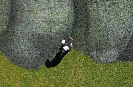 „Beyond Walls“ ist ein ephemeres Kunstwerk: Saype verwendet bei seiner Technik für das Malen auf Gras biologisch abbaubare Farben, die die Umweltbelastung auf ein Minimum reduzieren und langsam verblassen, wenn das Gras seinen normalen Wachstumszyklus durchläuft.